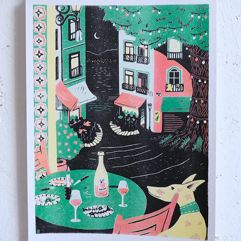 An A3 risograph print made from an original linocut print.
