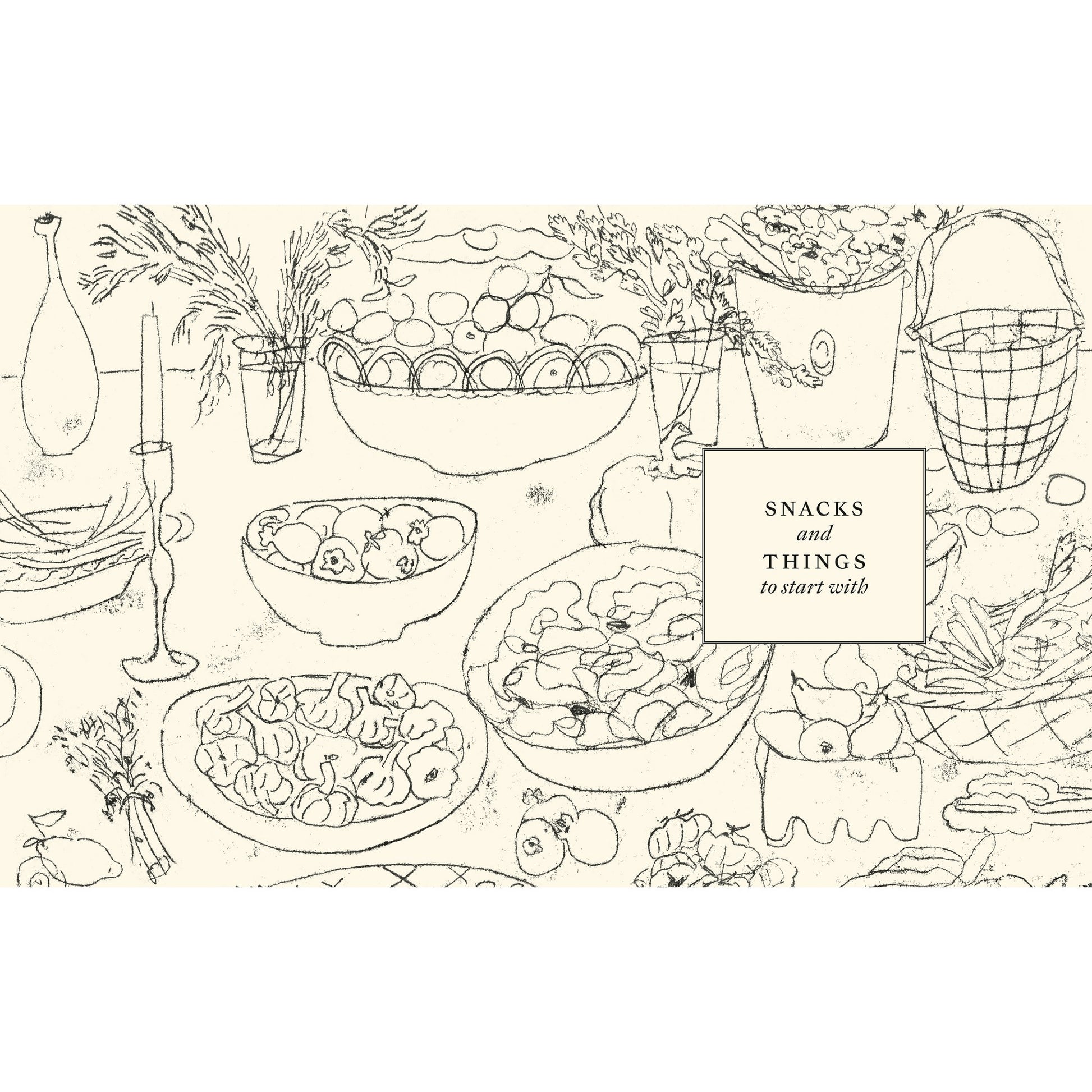 - Snacks and Things to Start with: Herbed Artichoke Dip; Spanish Tortilla & Friends; and Labne with Caramelized Harissa