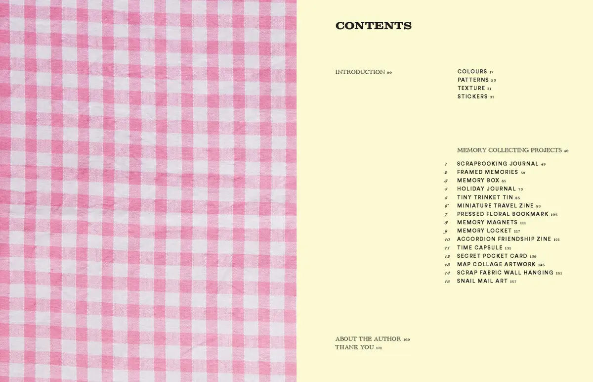 Projects feature: Scrapbooking Journal, Framed Memory Wall Art, Memory Box, Holiday Journal, Tiny Trinket Tin, Pressed Floral Bookmark, Memory Magnets, Accordion Friendship Zine, Memory Locket, Miniature Travel Zine, Time Capsule, Secret Pocket Card, Map Collage, Scrap Wall Hanging and Martina's famous Snail Mail Art.